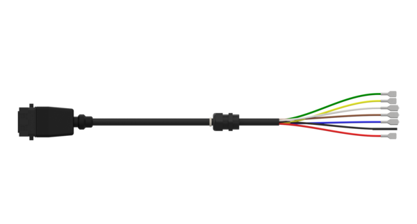 | Cable end (left side of diagram) | Open 7-strand with 6 push-on contacts and PG screw connection (3 x 1.5 mm², 4 x 0.5 mm²) |