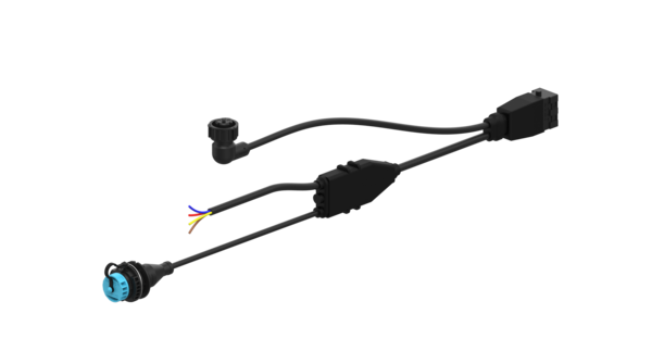 | Cable end (left side of diagram) | Bayonet socket ISO 15170-B1-3.1-Sn/K1 4-pin + open 4-strand 4 x 1.5 mm² + diagnosis socket with blue cap 7-pin |