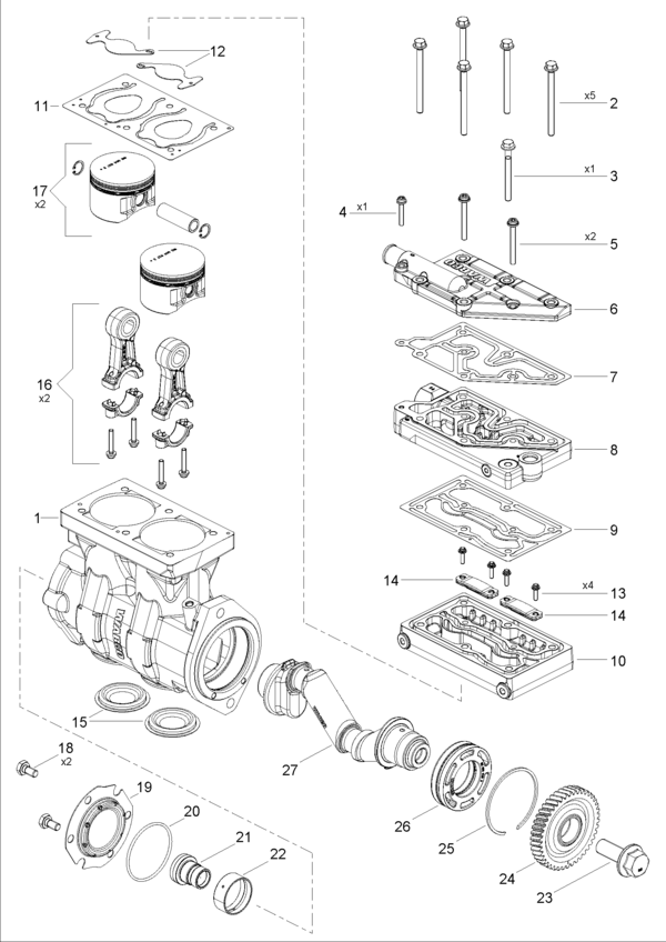 Twin-Cyl.Compressor 636cc,flangemounted –(with gear)