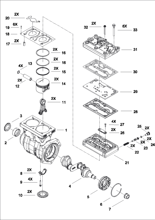 Twin-Cylinder compressor, flange mounted